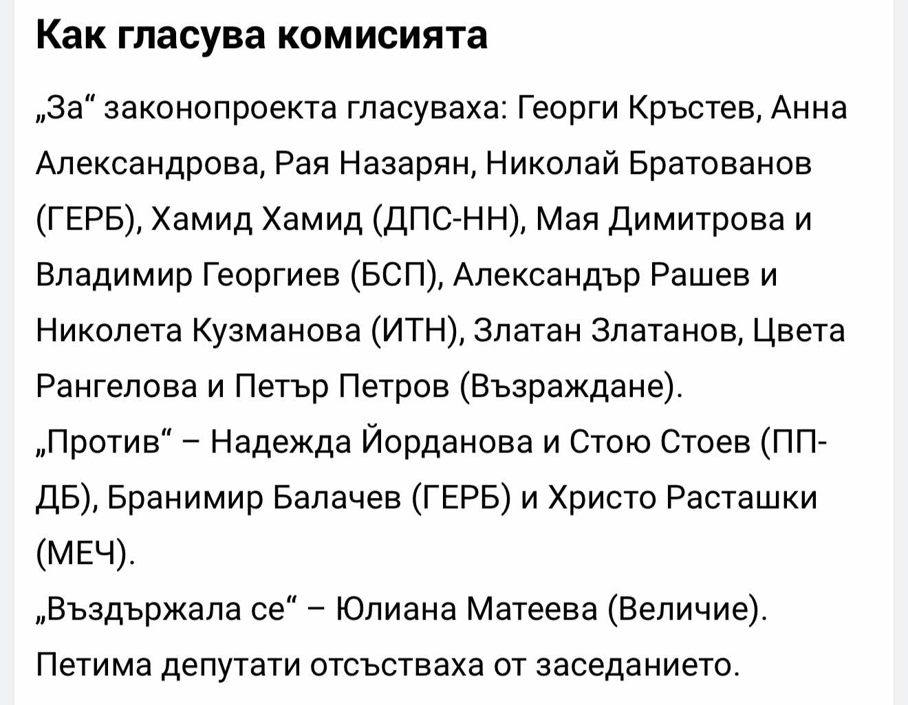 На финала правната комисия одобри промените в НК на първо четене с 14 гласа „за“, четирима „против“ и един „въздържал се“.